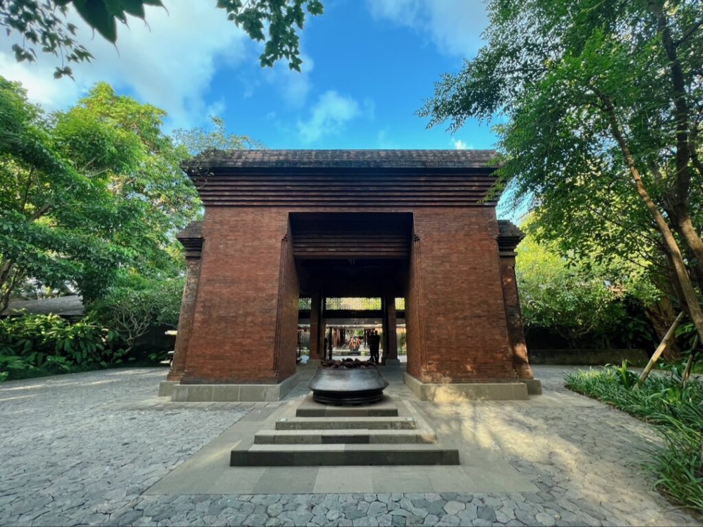 ホテルに到着し、重厚感ある門を抜けた先に見えるのは、喧騒から離れた隠れ家のような空間。