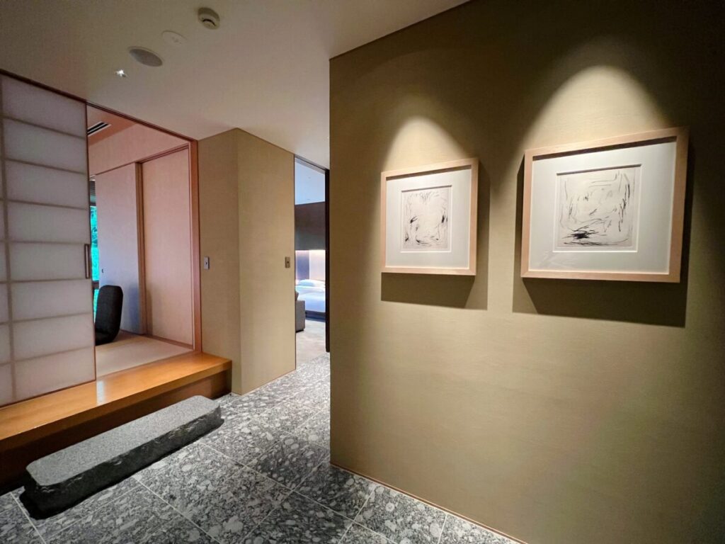 エントランスの先には、障子のある和室と洋風のベッドルームの2部屋で構成された空間が広がり、トップスイートのよう。
