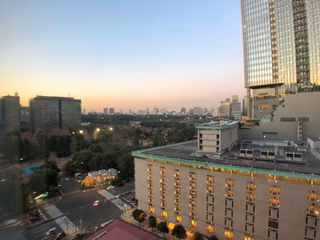 今回の客室は、日比谷公園側の高層階であったため、普段の銀座方面とは異なる、より穏やかな景観を眺めることができました。