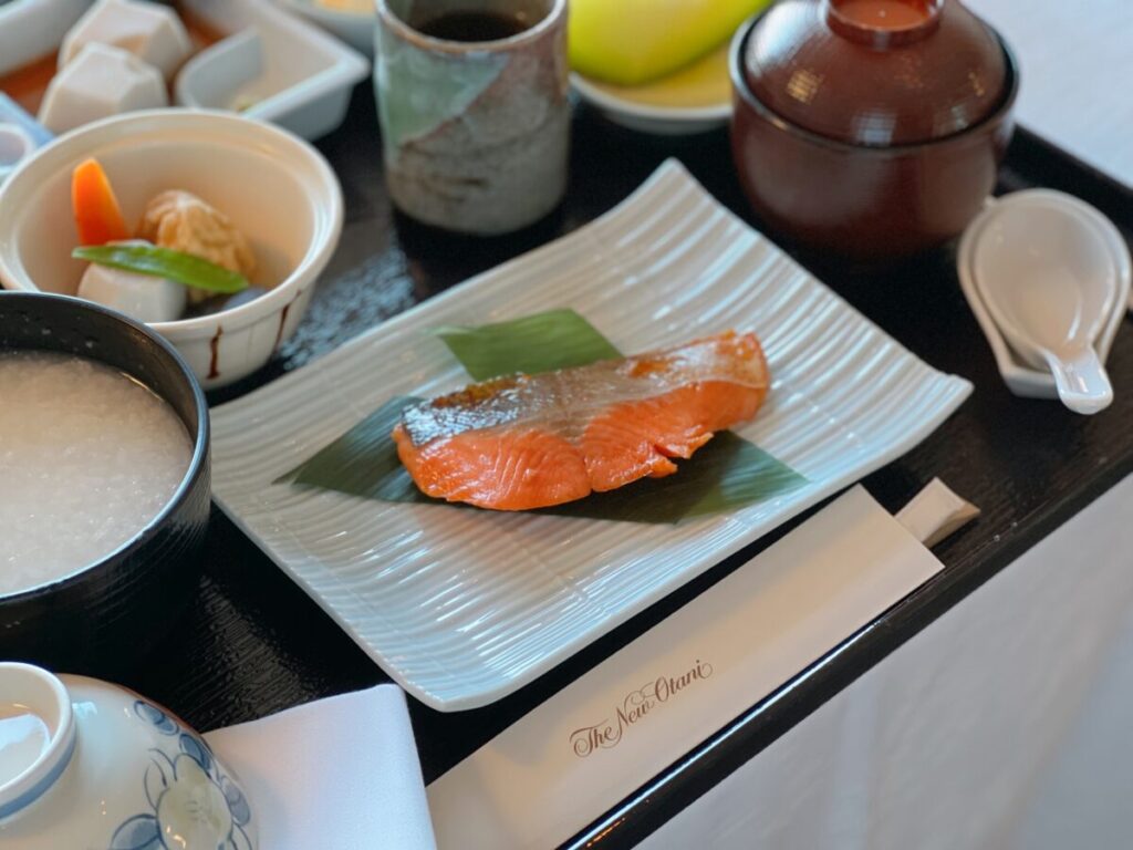 焼き魚に小鉢、卵料理、煮物にご飯 / お粥、味噌汁という基本的なラインナップですが、ニューオータニらしい和のこだわりが詰まったセットメニューです。