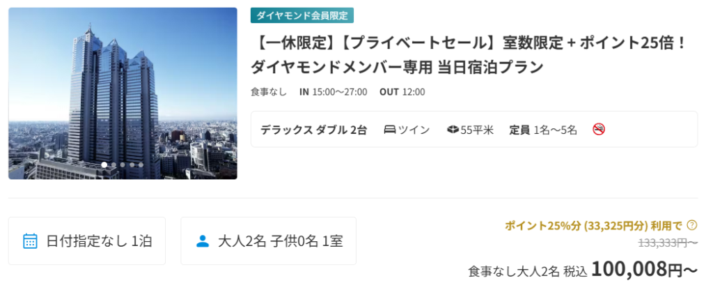 パークハイアット東京は一休のタイムセールを利用した予約がおすすめです。